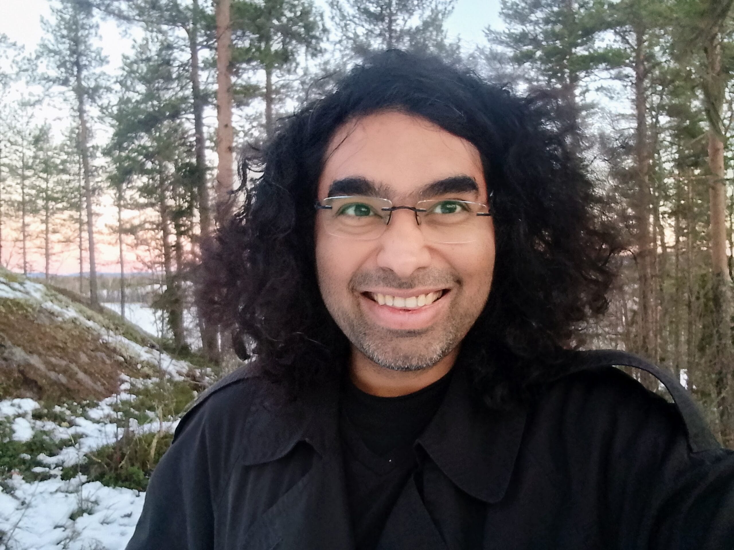 Here is a picture of me, from as North as I have ever been. The location is somewhere near Umeå, Sweden. (Not North enough perhaps, but look at the beautiful violet (and yellow and orange) glow in the sky!)